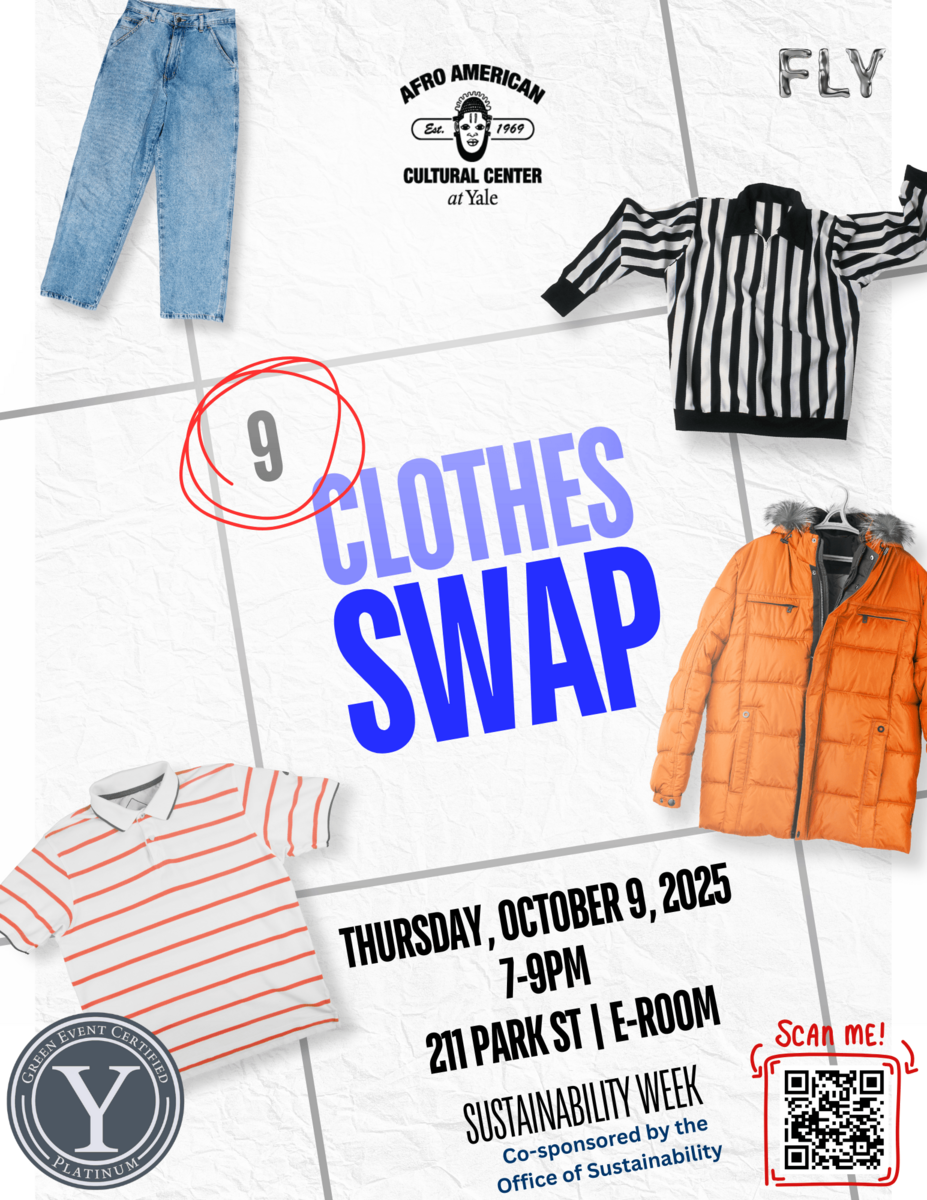 Join F.L.Y. (Fashion Leaders at Yale) and The House for a clothing swap! Bring some pieces you’re ready to purge from your closet and trade them in for new (to you) items. Members of F.L.Y. will be on hand to give fashion advice and one-on-one consultations.
